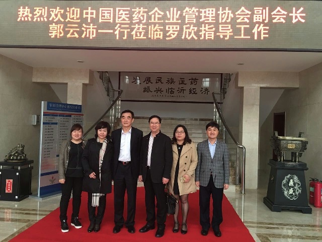 圖為中國醫藥企業管理協會會長郭云沛(左三)一行來我公司指導時的情景