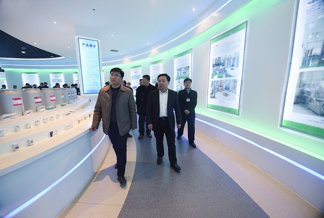上圖為全市基層黨建觀摩會(huì)與會(huì)人員一行參觀公司展廳的情景