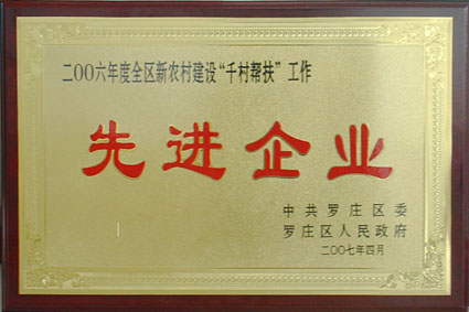 賀我集團(tuán)被羅莊區(qū)評為“2006年度全區(qū)新農(nóng)村建設(shè)千村幫扶工作先進(jìn)企業(yè)”!(2007-5-10)