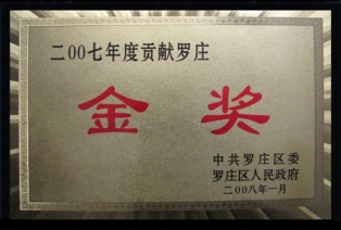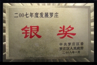 2008年1月,鑒于公司對(duì)地方經(jīng)濟(jì)發(fā)展做出突出貢獻(xiàn),山東羅欣藥業(yè)股份有限公司獲得由羅莊區(qū)委、羅莊區(qū)人民政府頒發(fā)的“2007年度貢獻(xiàn)羅莊金獎(jiǎng)”、“2007年度建設(shè)羅莊銀獎(jiǎng)”、“2007年度發(fā)展羅莊銀獎(jiǎng)”及“2007年度科學(xué)技術(shù)進(jìn)步銅獎(jiǎng)”等榮譽(yù)稱(chēng)號(hào)。