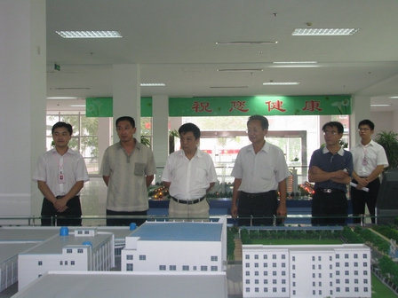 上圖為山東省醫(yī)藥技師學(xué)校段正湘主任(前排右二)、翟樹林主任(前排右四)、劉建升處長(zhǎng)(前排右一)、臨沂市食品藥品監(jiān)督管理局人事教育科副科長(zhǎng)王瑞來(lái)等領(lǐng)導(dǎo)參觀公司展廳時(shí)的情景