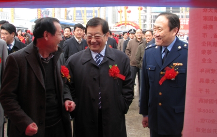 上圖為市政府副市長慕增利(左二)、市工商局長姚明(右一)參觀公司展位